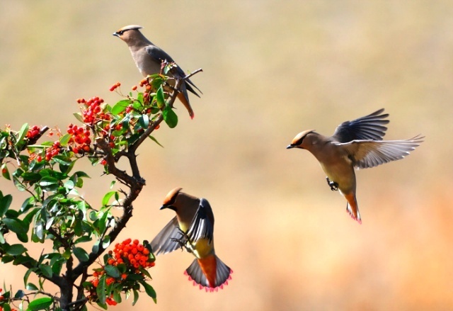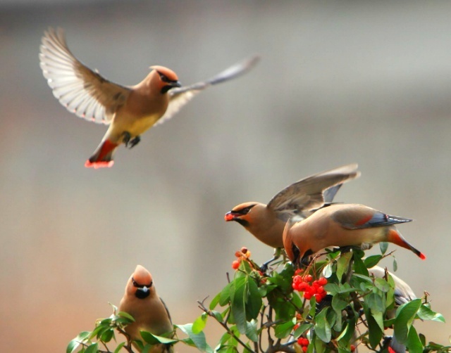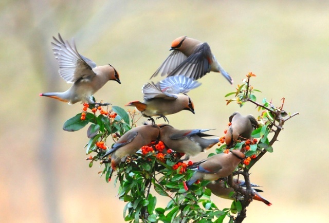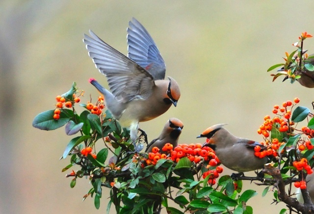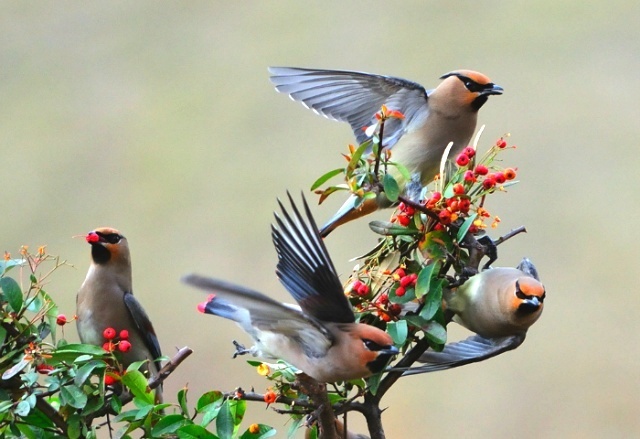 피라칸타 열매와 홍여새